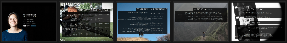 | 1.AC | Art Film by Herbert Nauderer | DoP: Tom Fährmann | 2016 1.AC | Musik Video by Bernd K. Wunder | DoP: Manuel Wenger | 2016 1.AC | Musik Video by Tim Dünschede | DoP: Holger Jungnickel | 2016 1.AC | Spec-Commercial by Minh Duong | DoP: Nikola Krivokuca | 2015 GAFFER | Short Fiction by Felicitas Sonvilla | DoP: Rebecca Meining | 2015 GAFFER | Short Fiction by Nicolai Zeitler | DoP: Rebecca Meining | 2014 ELECTRICIAN | Social Spot by Marcus H. Rosenmüller | DoP: Stefan Biebl | 2012 |
